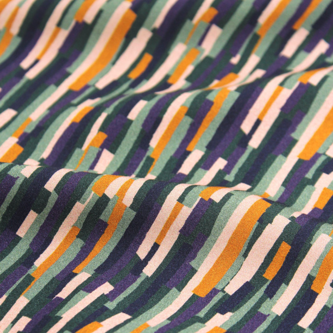 On se laisse inspirer par les empilements de roches sédimentaires de jolies falaises… et on se retrouve avec Roc, motif aux petites formes géométriques ! Gaie et colorée, cette viscose non transparente deviendra de superbes robes, chemises, blouses, jupes ou pantalons palazzo .